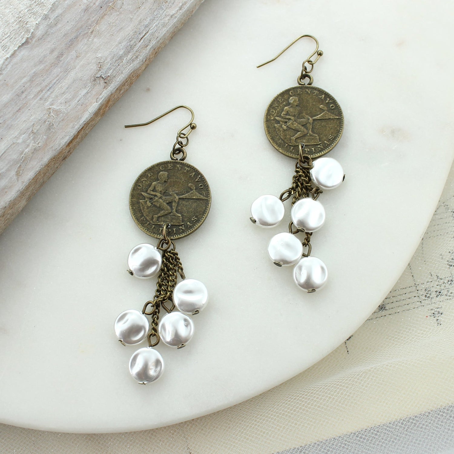 Flat Pearl & Coin Earrings
