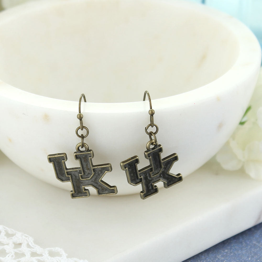 Shepherd hook earrings featuring the Kentucky logo and our signature vintage tone.