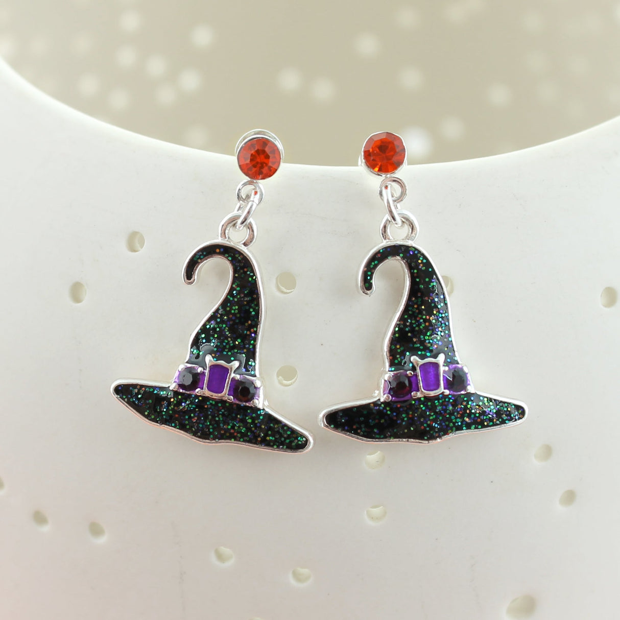 Enamel Witch Hat Halloween Earrings