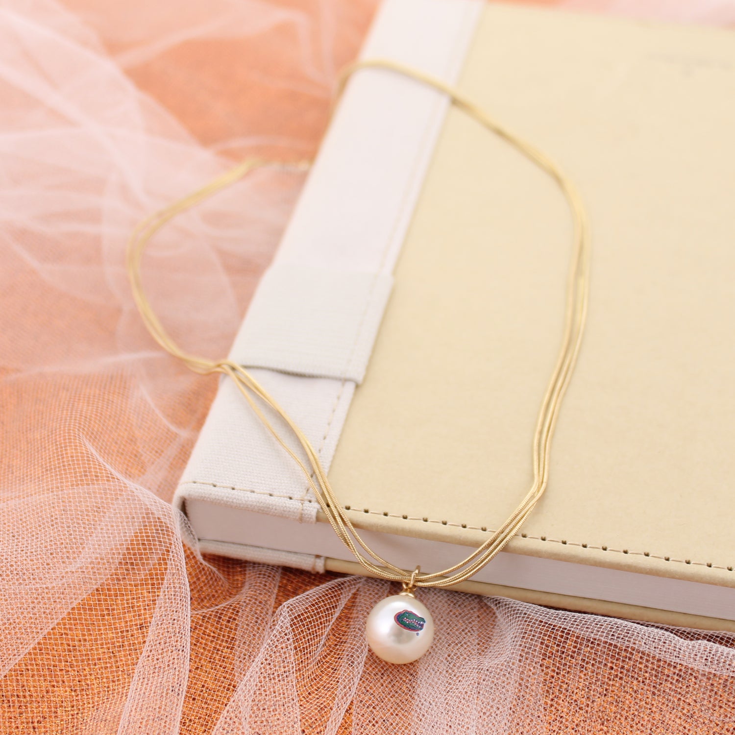 Florida Gold & Pearl Logo 3-Strand Necklace
