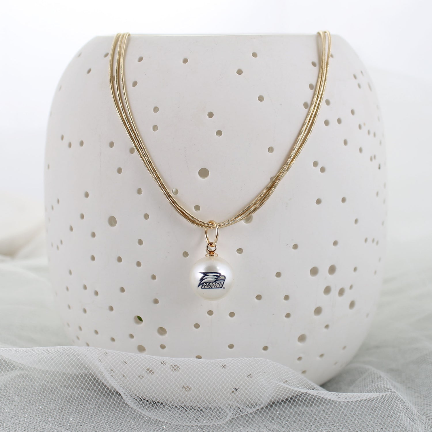18” Georgia Southern Gold & Pearl Logo 3-Strand Necklace