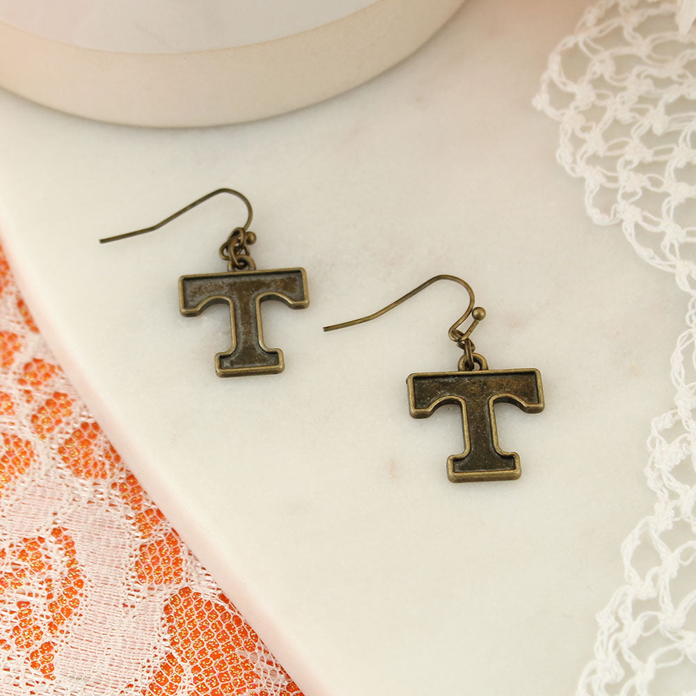 Shepherd hook earrings featuring the Tennessee logo and our signature vintage tone.