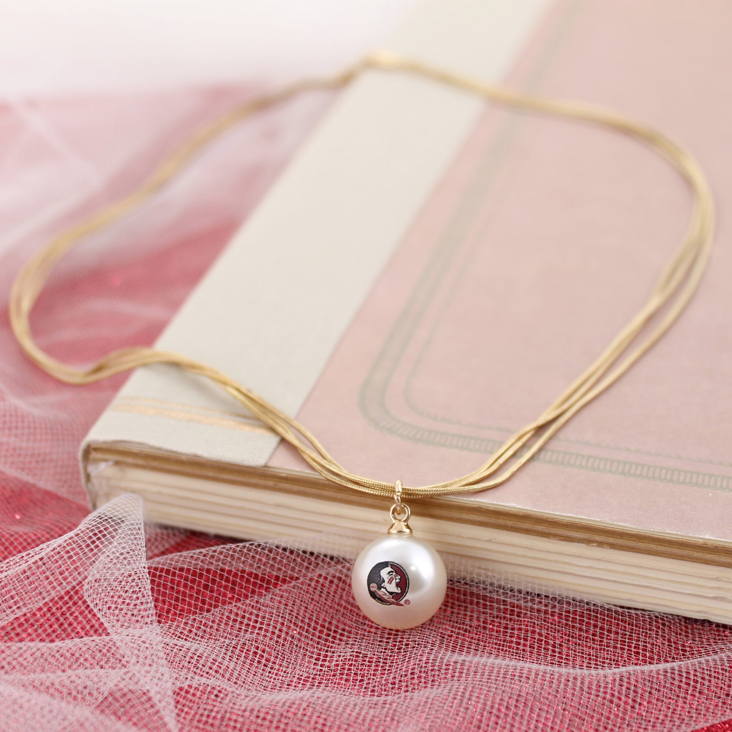 Florida State Gold & Pearl Logo 3-Strand Necklace