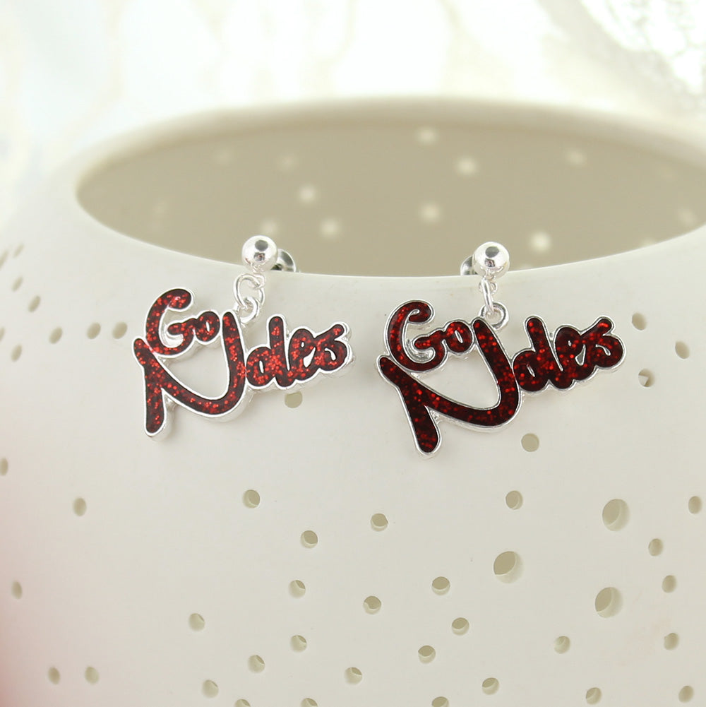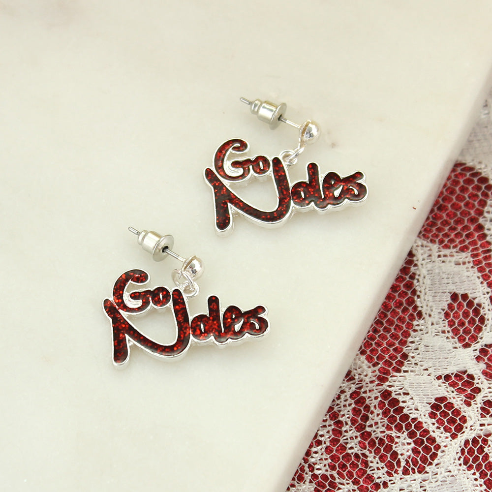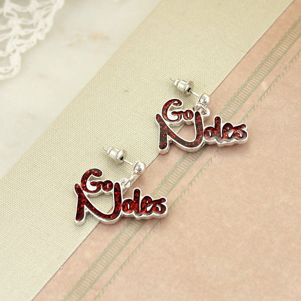 These lightweight post earrings feature our signature garnet glitter enamel “Go Noles” charms in an eye-catching script. Comfortable for all-day wear, they add a touch of sparkle to any look. Perfect on their own or styled with the matching bracelet, necklace, or pin for a full set.
