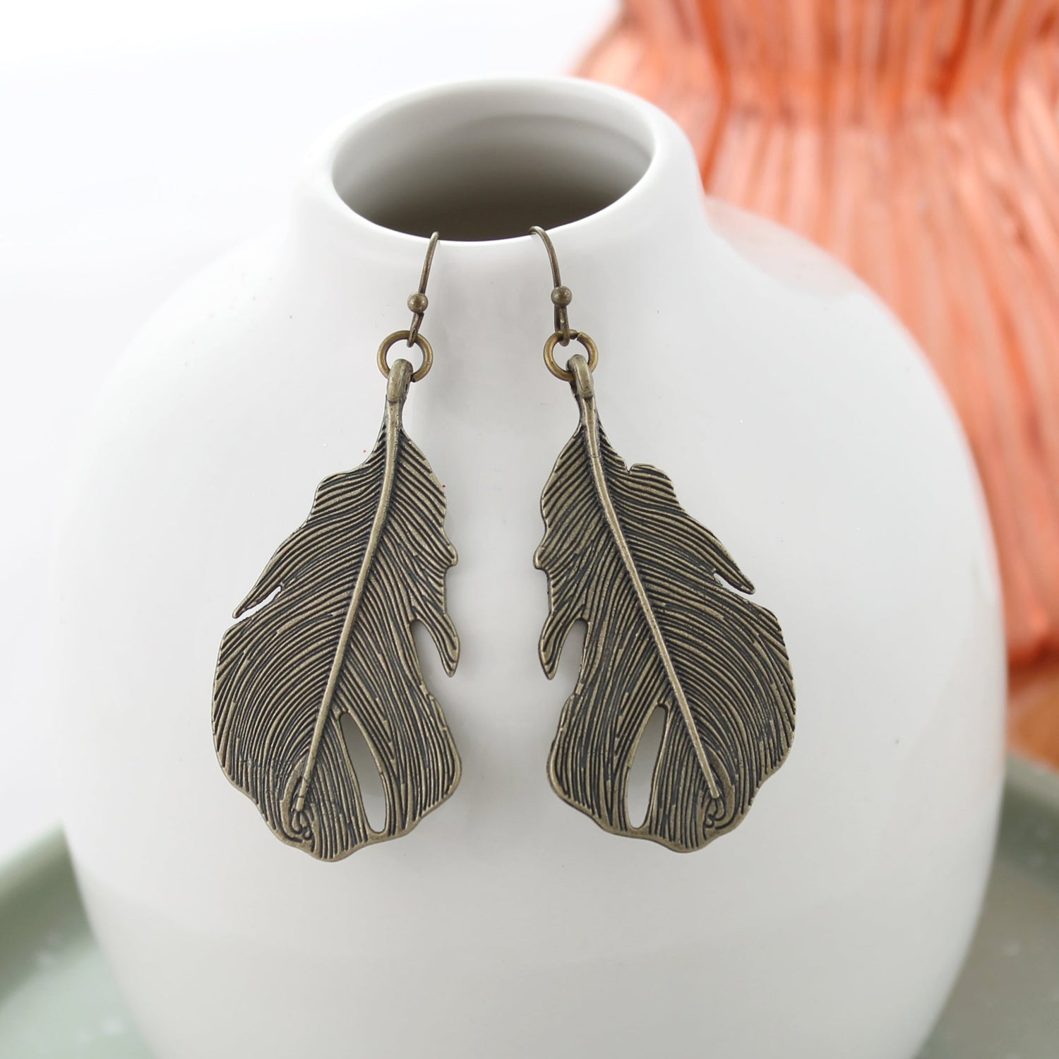 Vintage tone feather charm earrings. Feathers measure about 1.5” in height.